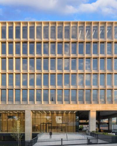 Edificio destacable por el diseño de su fachada en la que se incluyen grandes ventanales para favorecer la entrada de luz. Realizado en abril de 2018.